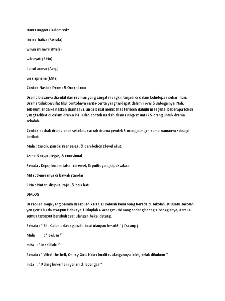 Contoh Teks Drama Singkat 5 Orang